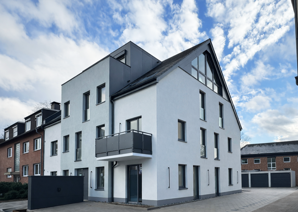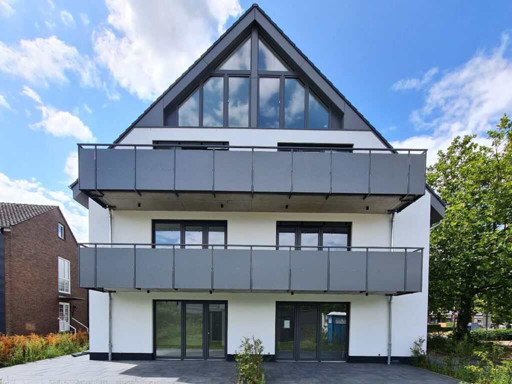 In Hamm steht ein modernes, dreigeschossiges Wohngebäude mit sechs Wohneinheiten, das nicht nur durch sein stilvolles Design, sondern auch durch seine nachhaltigen Elemente überzeugt.