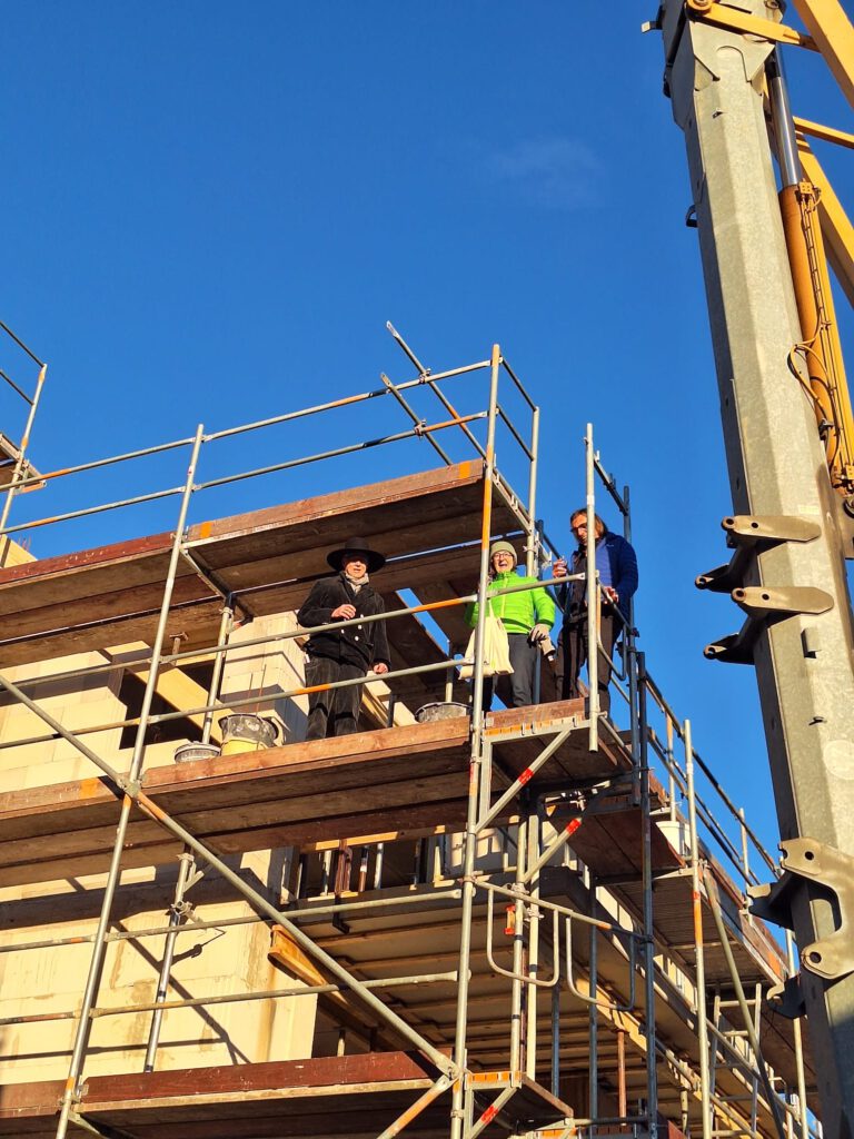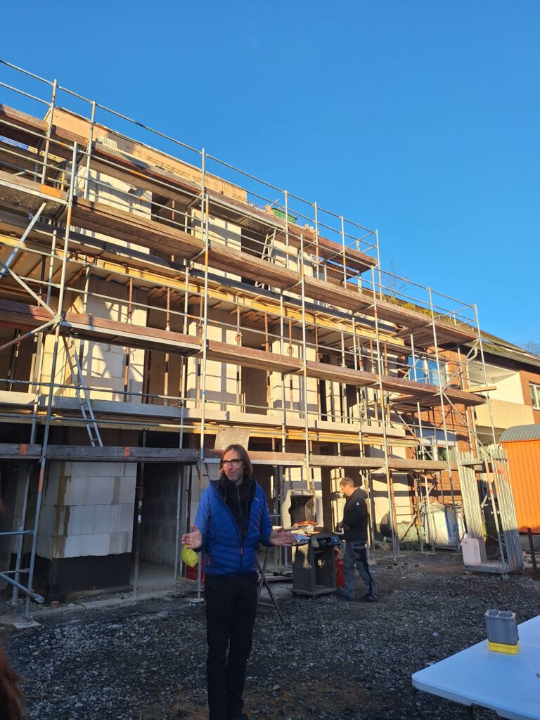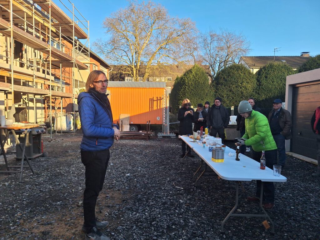 Bei einem kleinen Umtrunk bot sich Raum für Gespräche und Anerkennung der Leistungen aller Beteiligten. Mit dem Richtfest startet nun die nächste Bauphase, in der der Innenausbau und weitere Gewerke im Mittelpunkt stehen.