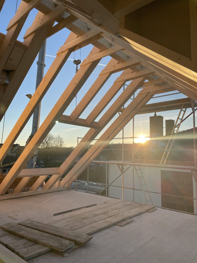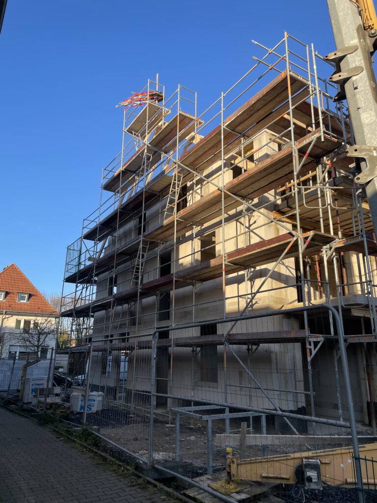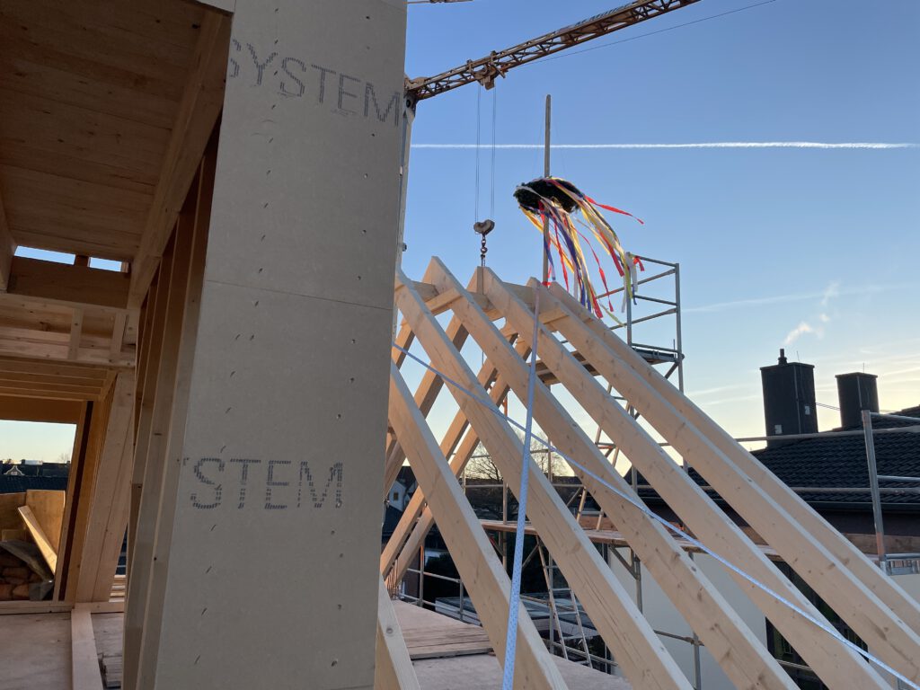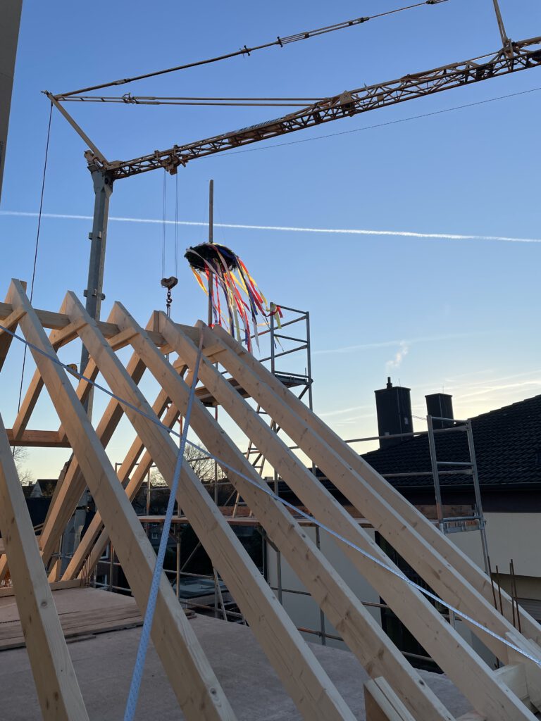Mit dem traditionellen Richtfest wurde ein bedeutender Meilenstein beim Bau des neuen Mehrfamilienhauses erreicht. Nach Fertigstellung des Rohbaus versammelten sich Bauherrschaft (Astrid Nachtigall), Zimmerei Gisbert Dünschede GmbH, Planer (PLANCONCEPT Architekten GmbH) und Gäste, um den Baufortschritt gemeinsam zu würdigen.