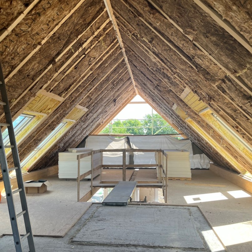 Zusätzlich schaffen große Grünflächen im Garten und auf den Flachdächern der Gauben nicht nur eine ansprechende Optik, sondern unterstreichen auch die ökologische Ausrichtung des Projekts. Dieses Wohngebäude kombiniert Komfort, Modernität und Nachhaltigkeit auf ideale Weise.