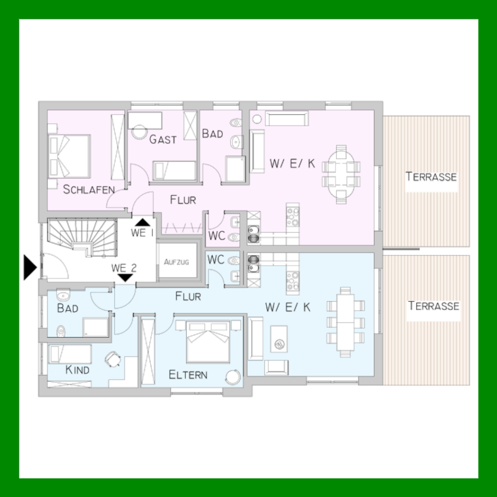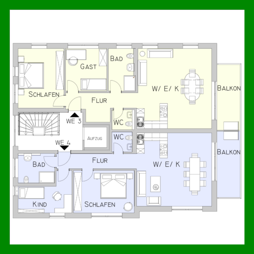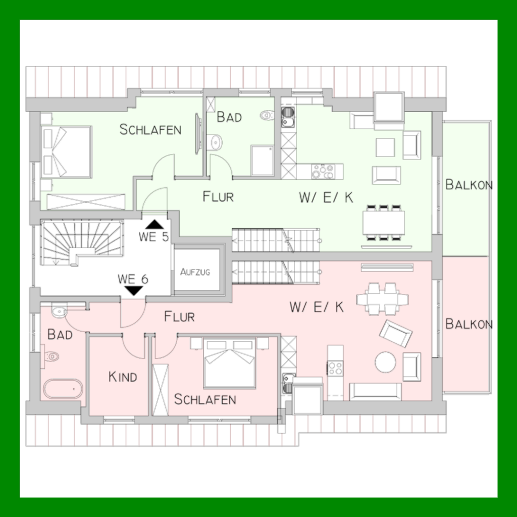 Die ersten beiden Etagen beherbergen großräumige und barrierefreie Wohnungen, während im dritten Obergeschoss eine lichtdurchflutete Maisonette-Wohnung mit Galerie im Dachgeschoss zu finden ist. Große Fenster und ein verglaster Giebel bieten aus allen Wohnungen einen herrlichen Blick ins Grüne und auf den bekannten Hammer Glaselefanten.
