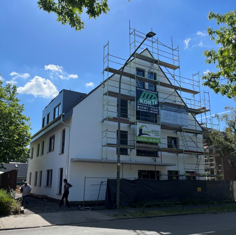 In Hamm steht ein modernes, dreigeschossiges Wohngebäude mit sechs Wohneinheiten, das nicht nur durch sein stilvolles Design, sondern auch durch seine nachhaltigen Elemente überzeugt.